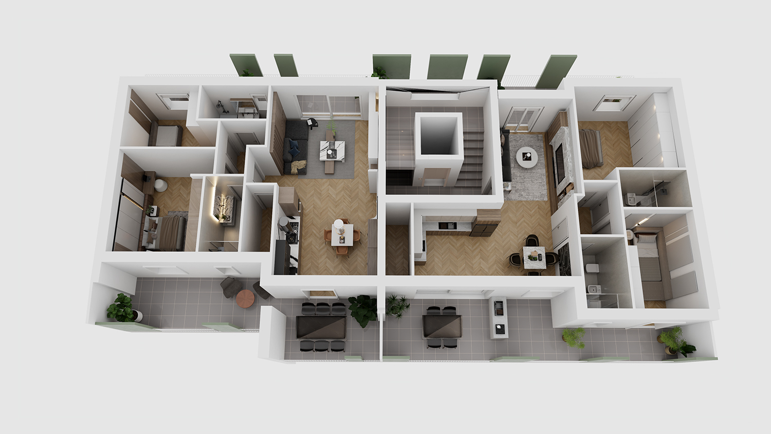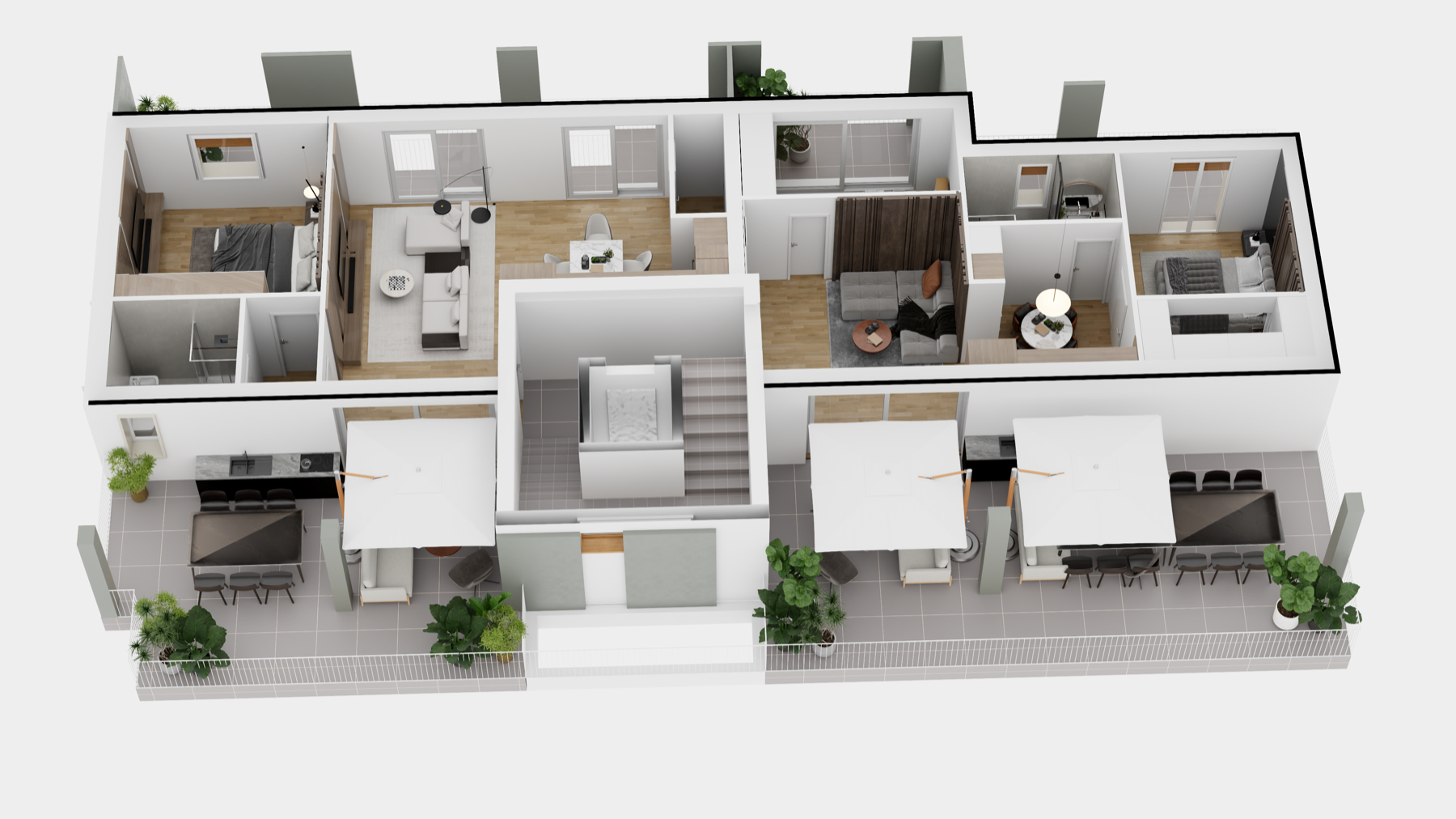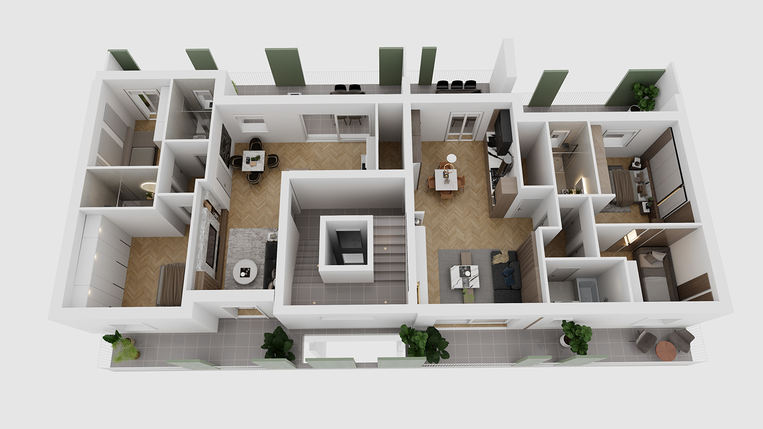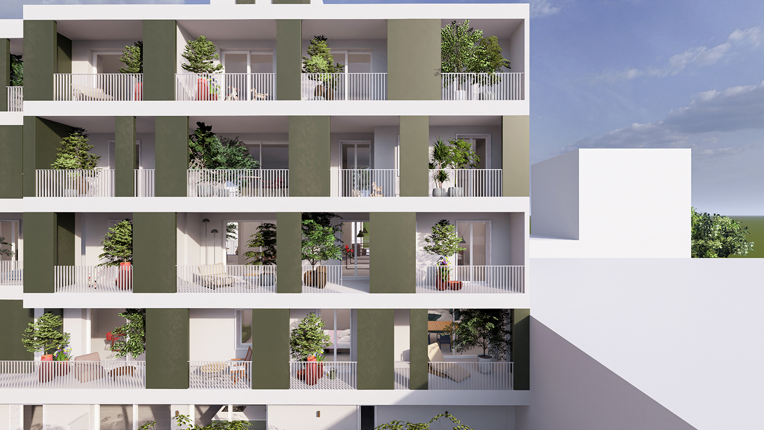Le abitazioni, rifinite e funzionali, sono studiate per garantire il massimo comfort sfruttando in maniera ottimale gli eleganti spazi interni e le ampie terrazze esterne; particolare cura è stata riservata all’efficienza energetica che, grazie alle scelte adottate, garantisce un ridotto impatto ambientale ed un notevole risparmio energetico. Le finiture di alto pregio ed i materiali utilizzati, riflettono una eleganza sobria ed una attenzione ai dettagli che si traducono in un ambiente piacevole e raffinato.